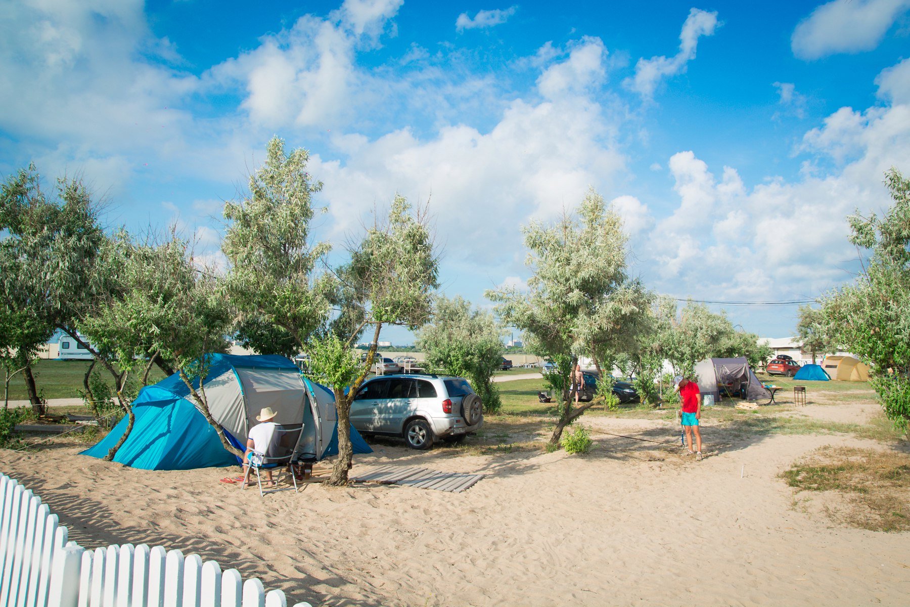 Оборудован удобной парковкой, тентами от солнца, душами и туалетами, специальными местами для приготовления пищи, круглосуточно охраняется.