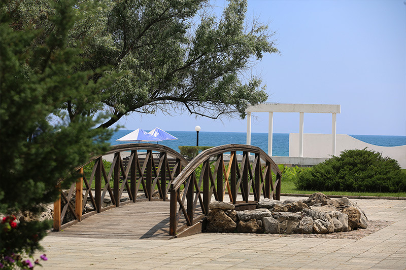 Собственный песчаный пляж протяженностью 1000 метров оборудован медицинскими пунктами, спасательной службой, массажными кабинками, теневой зоной, душевыми, туалетами, поручнями и трапами для спуска в воду.