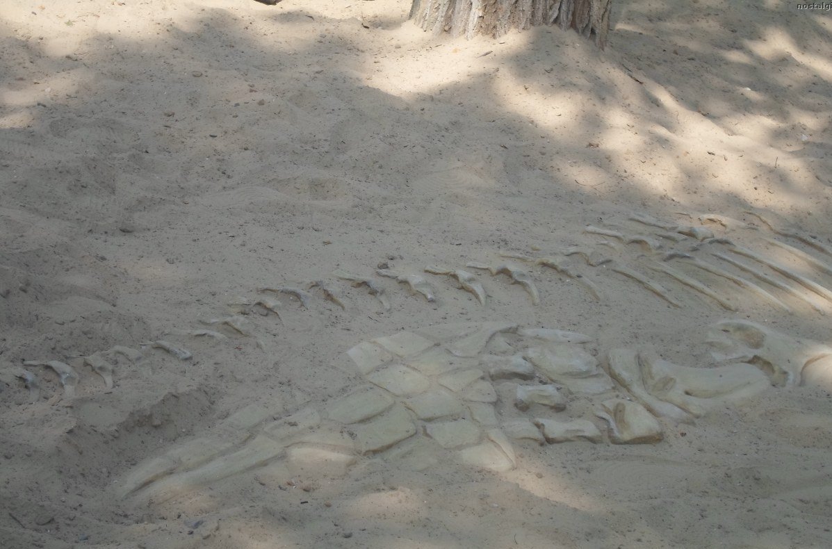 Удобные и ровные деревянные дорожки позволяют смотреть на экспонаты, а не под ноги. Все фигуры размещены по кругу, поэтому нет риска что-нибудь пропустить. В центре парка расположена огромная детская песочница, в которой дети могут почувствовать себя палеонтологами. Им предлагают найти в песке кости динозавров, использую для этого как лопатки, так и кисти.
