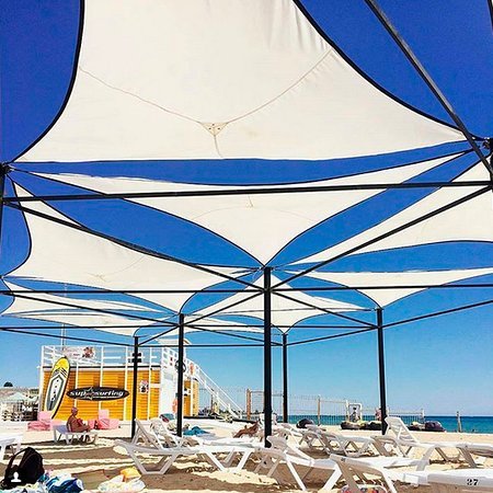 Самый большой, широкий и просторный пляж Евпатории и Заозерного. Находится в шаговой доступности от Гостевого дома "Гармония". Идеальное место для семейного отдыха! Бесплатный вход, современная пляжная инфраструктура, 4 кафе, где много вкусной еды и напитков, детская анимация и аквапарк с морской водой на берегу, прокат и обучение виндсерфингу и сапсерфингу, катамараны, пляжный волейбол и футбол, развлечения для детей и взрослых, праздники, вечеринки, футбольные трансляции и киносеансы на берегу моря!