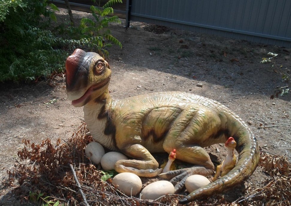 Есть место для детских фото: голова динозавра и яйца динозавров, на территории также есть мини-магазинчик с различными динозавриками.